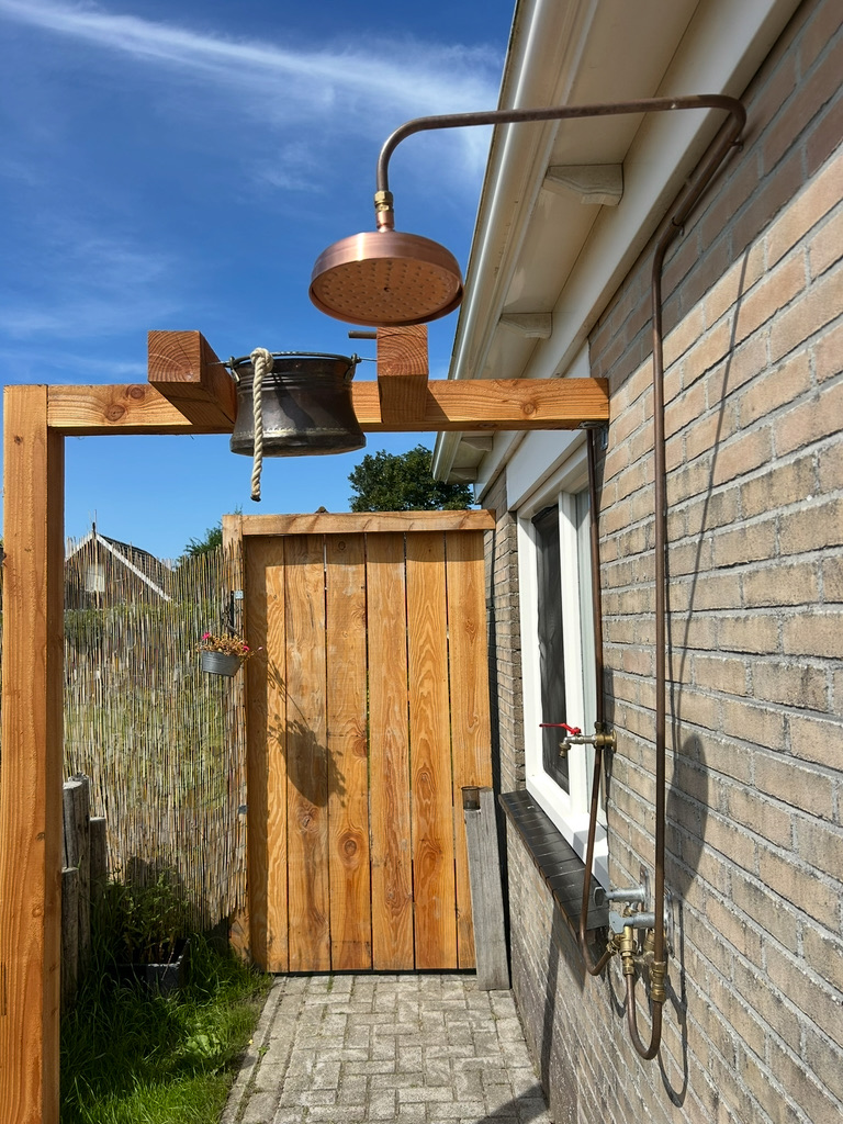 Er is een regendouche die koud/warm aangezet kan worden en een stortbak met koud water. Zo kan je na de eerste 15 minuten sauna heerlijk afspoelen en afkoelen. Op en rond het vlonder hebben we verschillende zitmogelijkheden om even bij te komen. Even hydrateren terwijl je afkoelt voor de volgende 15 minuten sauna ronde. Ga jij ook voor de derde ronde sauna?